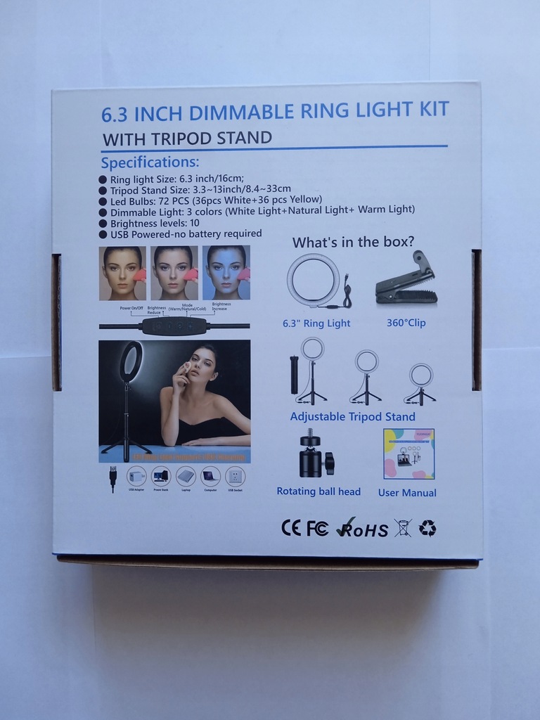 rozmiar lampy pierścieniowej: 6,3 cala/16cm