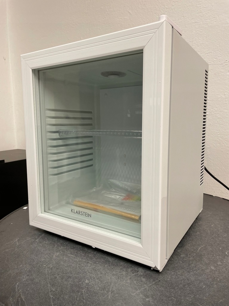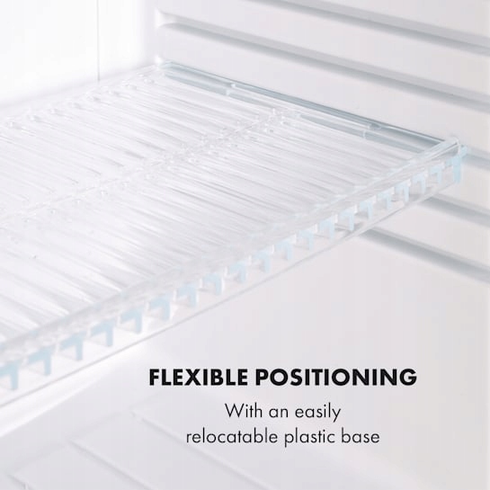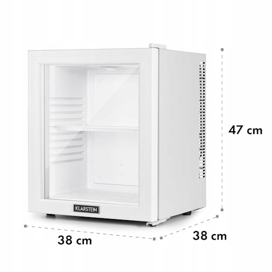 Kompaktowa, ale jednocześnie dość duża pod względem miejsca do przechowywania: Mini lodówka Klarstein Brooklyn 23L White o pojemności użytkowej 23 litrów oferuje wystarczająco dużo miejsca na szeroką gamę napojów bezalkoholowych jak i alkoholowych. Dziesięć poziomów na półki w odległości co 2 cm daje różne możliwości elastycznej aranżacji wnętrza urządzenia za pomocą plastikowej półki. Dla wychłodzenia dostępne są 3 stopnie regulacji mocy chłodzenia od 12 do 15 °C. Urządzenie Brooklyn 23 White robi szczególne wrażenie przede wszystkim dzięki rewelacyjnemu designowi: panoramiczne szklane drzwi zapewniają stały wgląd do białego wnętrza. Oświetlenie LED wewnątrz bezproblemowo oświetla przechowywaną żywność po otwarciu drzwi.