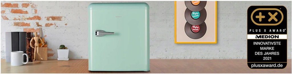 Minilodówka MEDION Retro o pojemności 42 litrów oferuje wszystko, czego potrzebujesz. Nawet w przypadku dużych przyjęć można łatwo schłodzić wystarczającą ilość napojów, które są zawsze pod ręką.