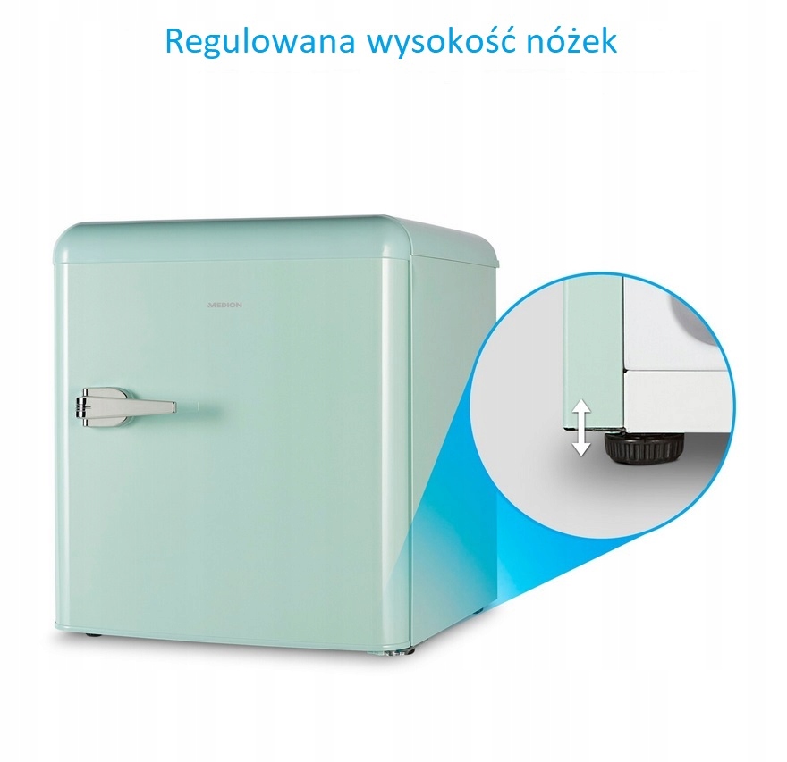 Mini lodówka MEDION® Retro MD 37171, pojemność użytkowa 42 l, ręczna regulacja temperatury, nóżki z regulacją wysokości, stylowy design