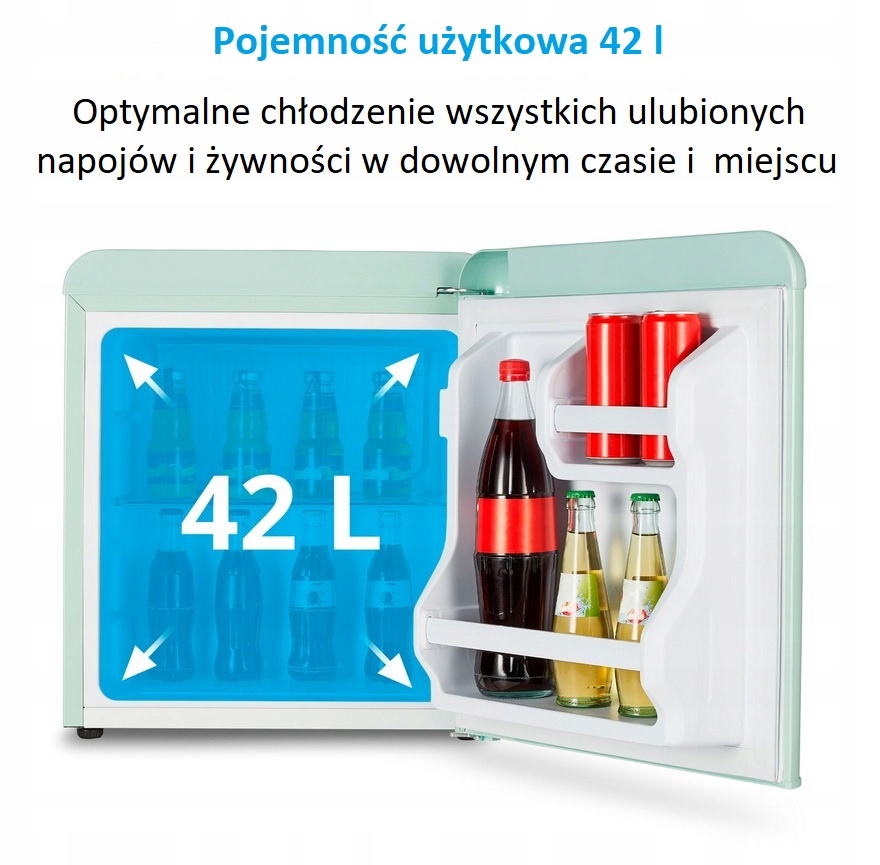 Mini lodówka retro jest absolutnie praktyczna, a także wizualnie wzbogaca każde pomieszczenie. Jej obudowa została zaprojektowana w stylu lat 50-tych i natychmiast przywodzi na myśl klasyczny amerykański bar. Dzięki temu lodówka równie dobrze prezentuje się w kinie domowym, jak i w pokoju gier lub gabinecie.
