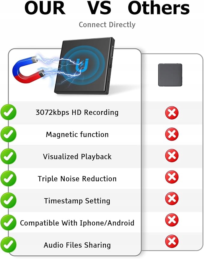 - Mini dyktafon charakteryzuje się błyskawiczną szybkością transmisji wynoszącą 3072 kbps, co pozwala na szybkie i łatwe przesyłanie nagrań do dowolnego urządzenia. Ponadto zaawansowana technologia redukcji szumów gwarantuje, że każde nagranie jest krystalicznie czyste, co czyni go idealnym narzędziem do uchwycenia każdego słowa ważnych spotkań i konferencji.