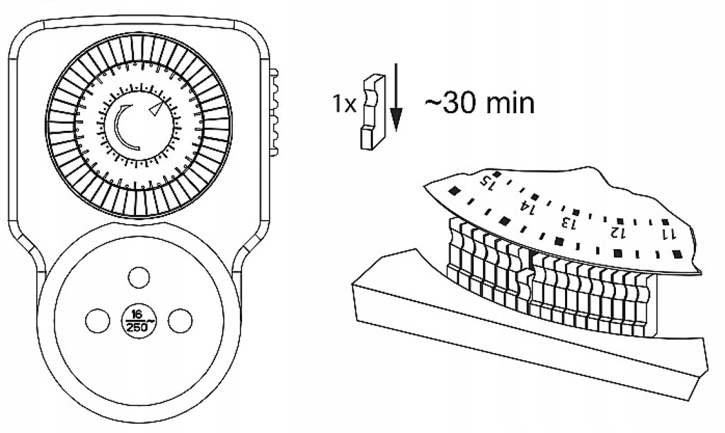 ✅ Minimalny czas włączenia/wyłączenia wynosi 30 min (1 zapadka)