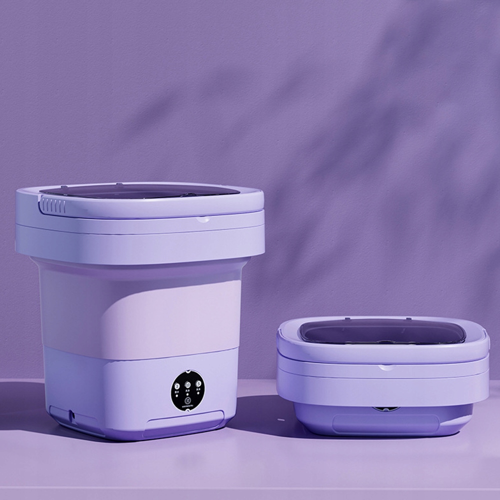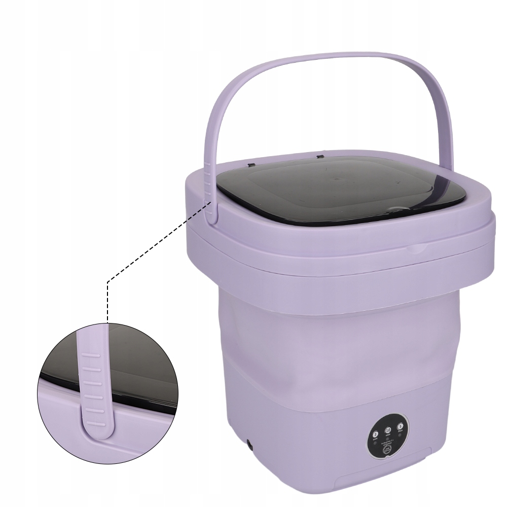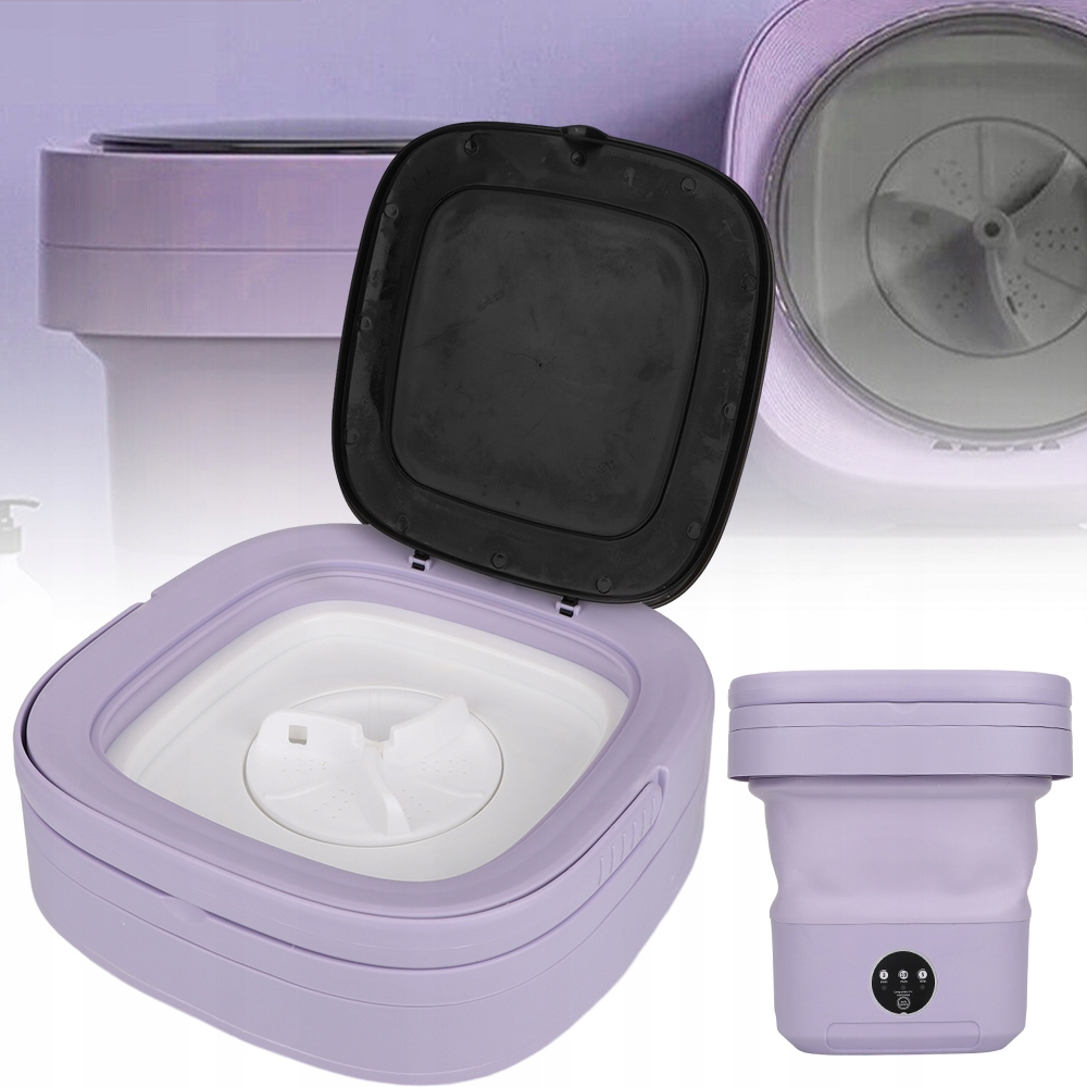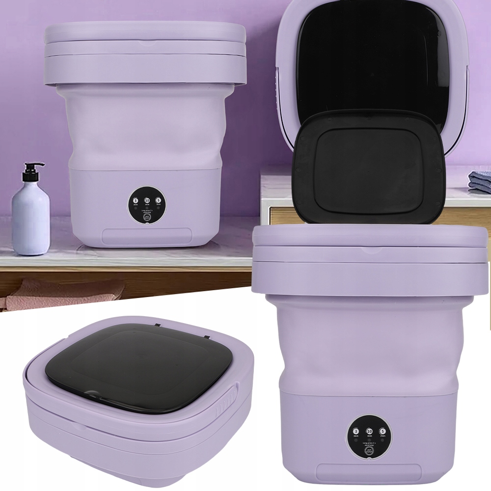 - Ta zminiaturyzowana pralka została specjalnie zaprojektowana tak, aby można ją było złożyć do małej walizki i łatwo transportować. Kiedy chcesz zrobić pranie, po prostu rozłóż pralkę i włóż ubrania do środka.