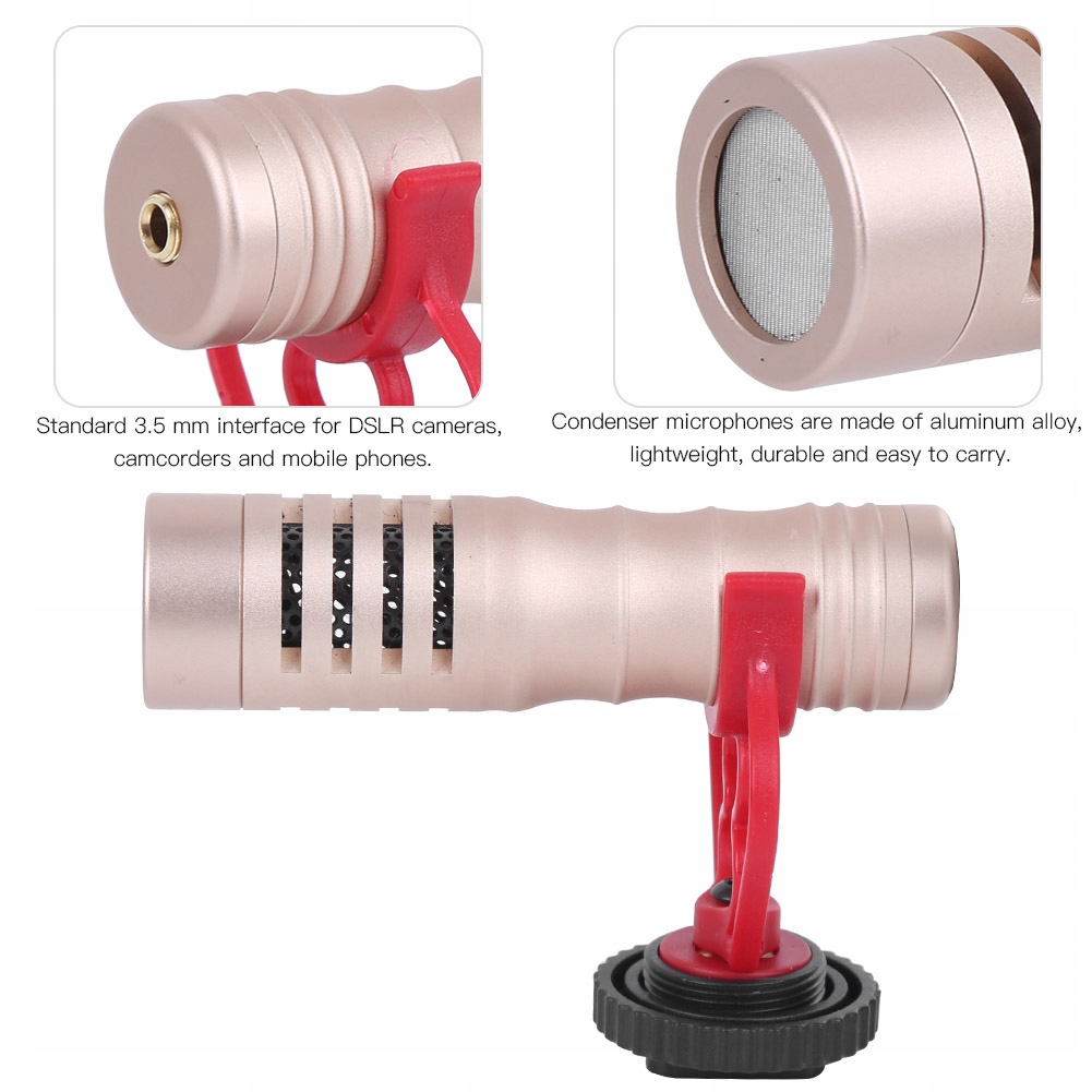 Funkcja:1. Mikrofony pojemnościowe są wykonane ze stopu aluminium, lekkie, trwałe i łatwe do przenoszenia.