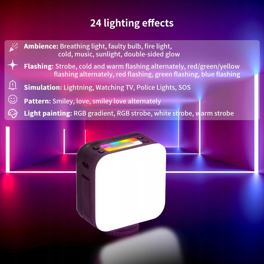 Mini Pocket Size: Portable video light, suitable for creative photography, selfie, still life, outdoor, concert, micro film, live broadcasting, patio party, home theater and other scenes.