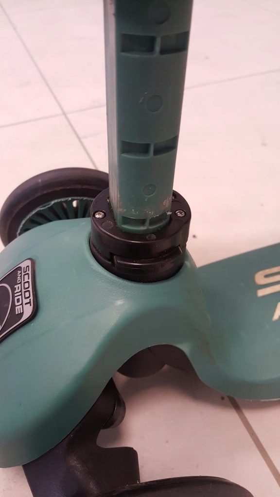 Widoczne ślady użytkowania, zatrzaski regulujące siedzisko i kierownice uszkodzone