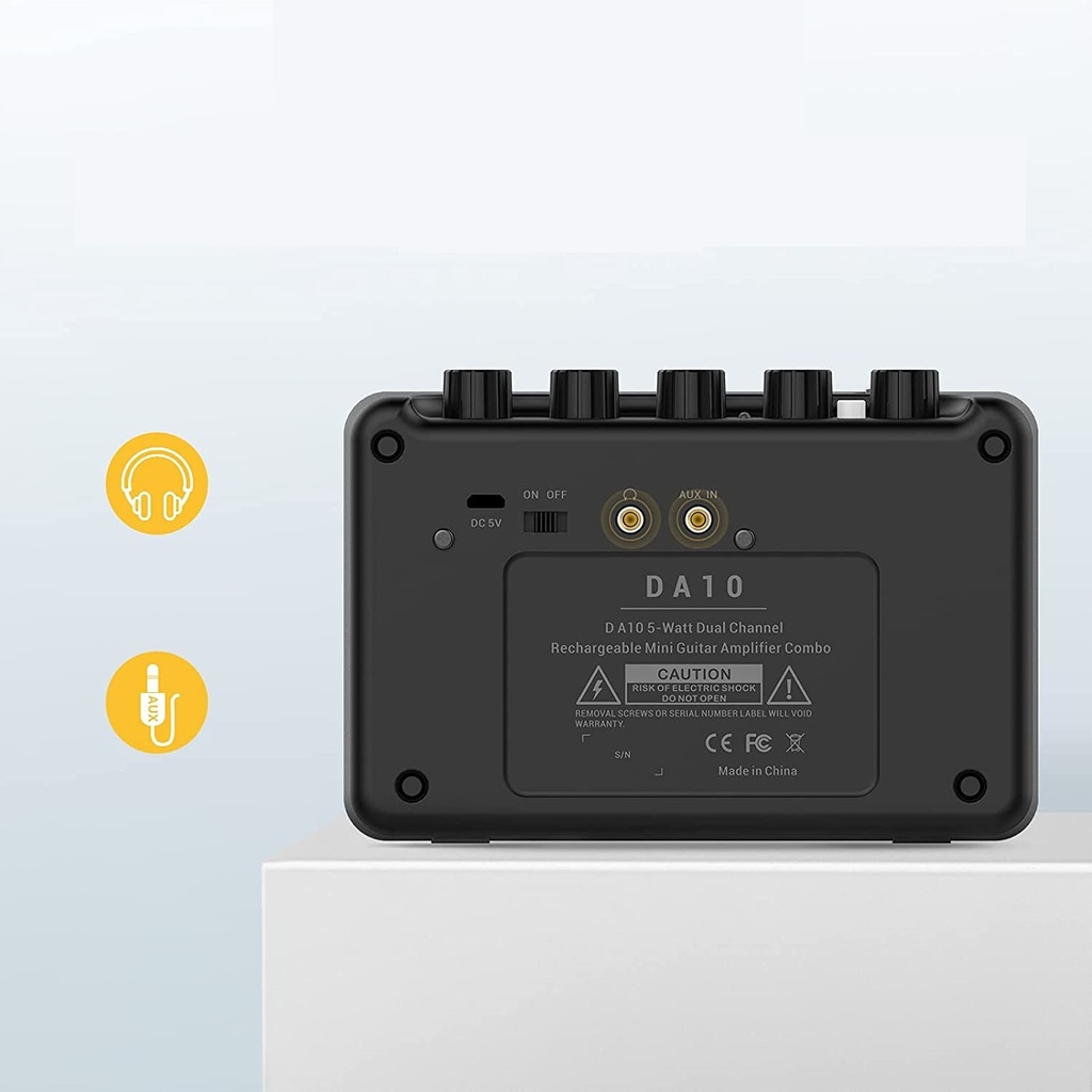Mały rozmiar Żywotność baterii - DA-10 może grać do czterech godzin przy szczytowej mocy 5 watów. Mimo to, jego niewielka konstrukcja ułatwia obsługę jedną ręką. Z tym miniwzmacniaczem możesz podróżować wszędzie, po prostu podłącz i używaj. Teraz możesz grać na gitarze elektrycznej zawsze i wszędzie, to jest fajne i zabawne.