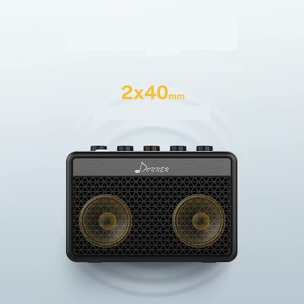 Świetny dźwięk - Specjalna konstrukcja przestrzenna wnęki dźwiękowej pozwala wytwarzać bardziej dynamiczny i szczegółowy dźwięk niż inne mini wzmacniacze gitarowe. Konstrukcja podwójnego zespołu dźwiękowego sprawia, że dźwięk o wysokiej częstotliwości jest delikatniejszy, a dźwięk o średniej częstotliwości jest bardziej stereoskopowy i słodki.