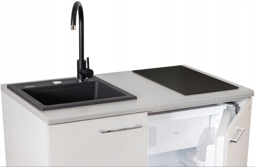 Minikuchnia zestaw AGD 4w1 MPM SMK-02 płyta indukcyjna, lodówka, szafka i zlew granit