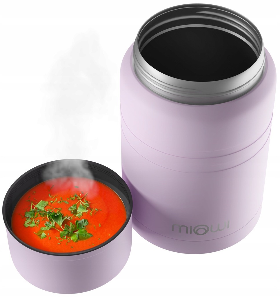 Termos obiadowy Miowi 500 ml to zaskakuje termiką, idealnie łącząc najwyższej jakości stal nierdzewną SUS 304 z technologią izolacji próżniowej. Właściwości termiczne tego termosu są niezwykłe: po 3 godzinach twoje jedzenie lub napój wciąż będzie ciepłe, utrzymując temperaturę około 70°C. Nawet po 6 godzinach, długo po porze lunchu, zawartość termosu pozostaje z temperaturą około 50°C.