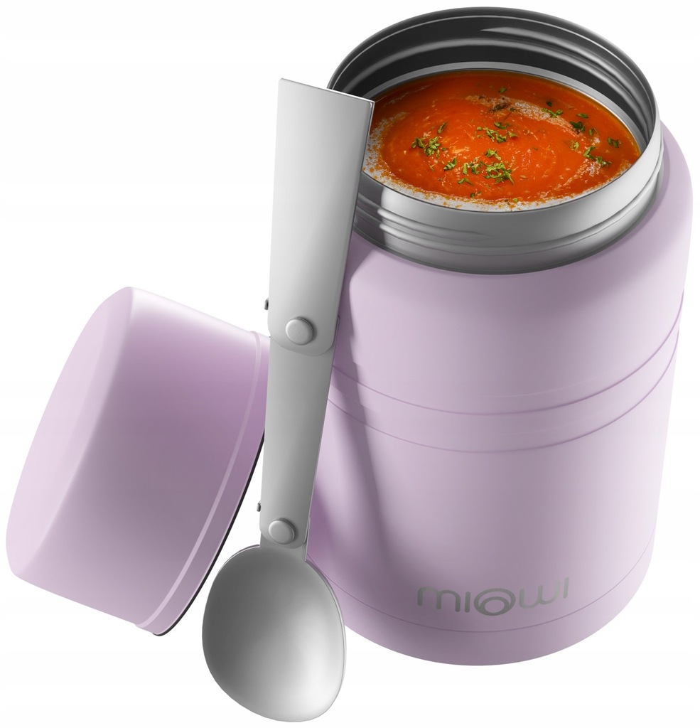 MIOWI TERMOS OBIADOWY NA ZUPĘ ŻYWNOŚĆ RÓŻOWY POJEMNIK TERMICZNY 500ML ŁYŻKA