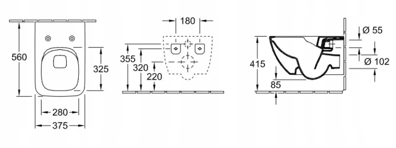 nie nadaje się do montażu ze spłuczkami ciśnieniowymi