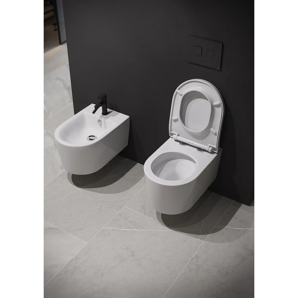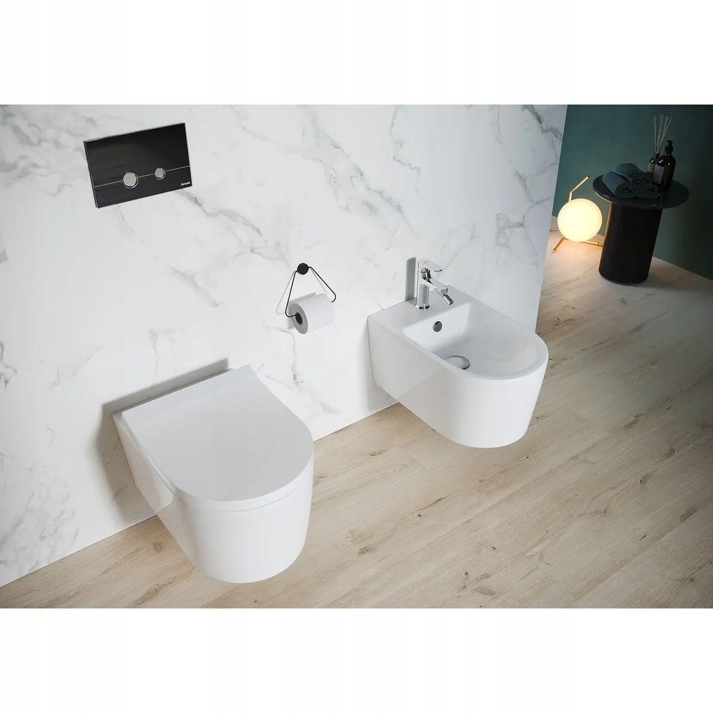 Miska zawieszana Reel StreamOn to połączenie nowoczesnego stylu i designu z wysoką jakością ceramiki. Miskę wyposażono w innowacyjny wirowy system spłukiwania StreamOn, który najpierw odwraca strumień wody, a następnie zamienia go w wir. Bez problemu usuwa zanieczyszczenia, zapewniając najwyższy standard higieny. Poza wyjątkową skutecznością, StreamOn charakteryzuje się wyjątkowo cichą pracą systemu. Zastosowany system ukrytego montażu zwiększa estetykę miski. Z miską Reel kompatybilna jest wolnoopadająca deska toaletowa Reel slim wrap. Została wykonana z odpornego na uszkodzenia duroplastu. Prosta budowa zapewnia łatwe czyszczenie, a innowacyjne rozwiązanie One Button Easy-Off pozwala na szybkie i łatwe zdejmowanie deski za pomocą jednego przycisku. Funkcja soft-close zapewni wolne domykanie deski, zapobiegając jej nagłemu uderzeniu o miskę. Po zamknięciu górnej części deski Reel, dolna część typu SLIM jest całkowicie ukryta. Specjalnie wyprofilowana budowa deski gwarantuje wysoki komfort użytkowania.