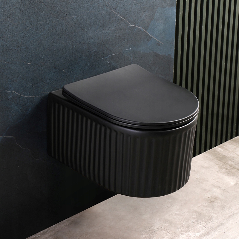 MISKA WC WISZĄCA RIMLESS LUMA-MTB-RIM-03 CZARNY MAT RYFLOWANA DESKA WOLNOOPADAJĄCA DUROPLAST