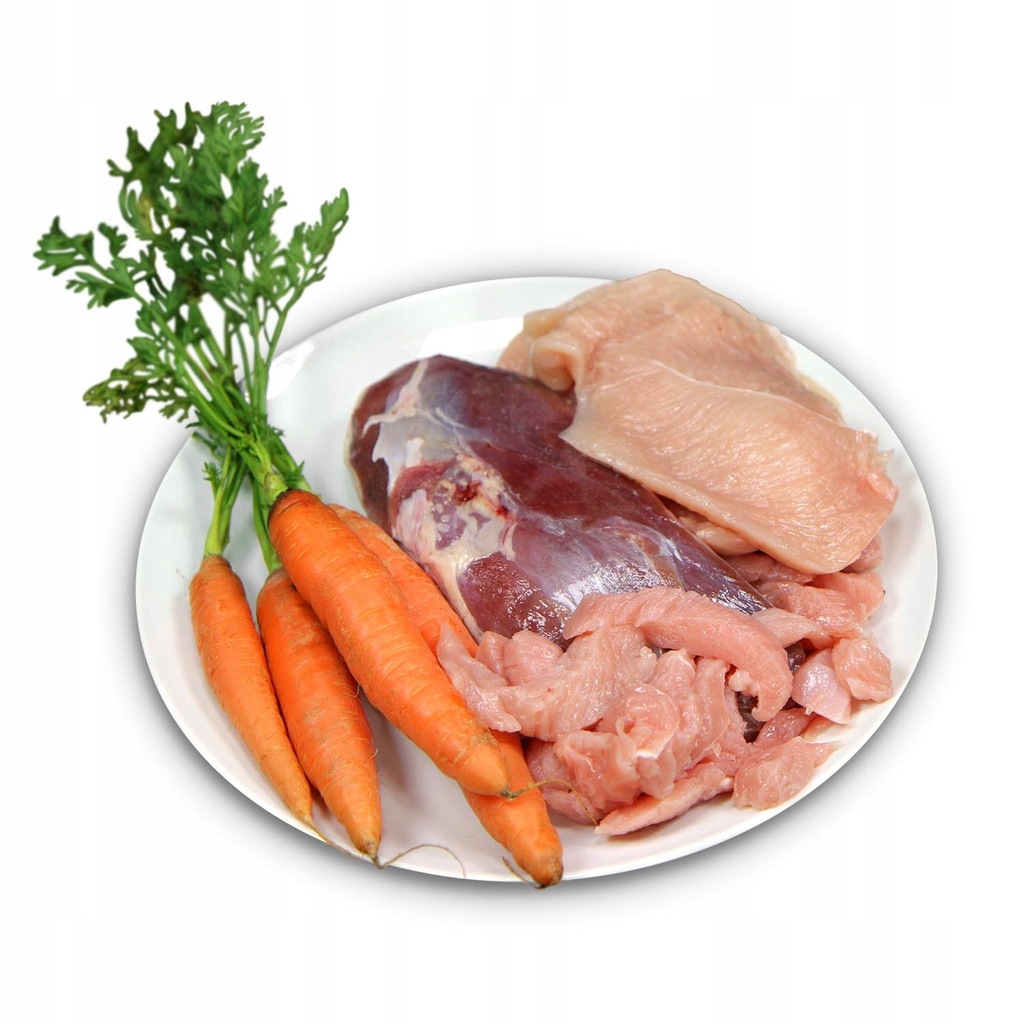 Skład: 71% mięso z kaczki, serca i wątróbka, 25% wywar, 3% marchew, 1% - minerały