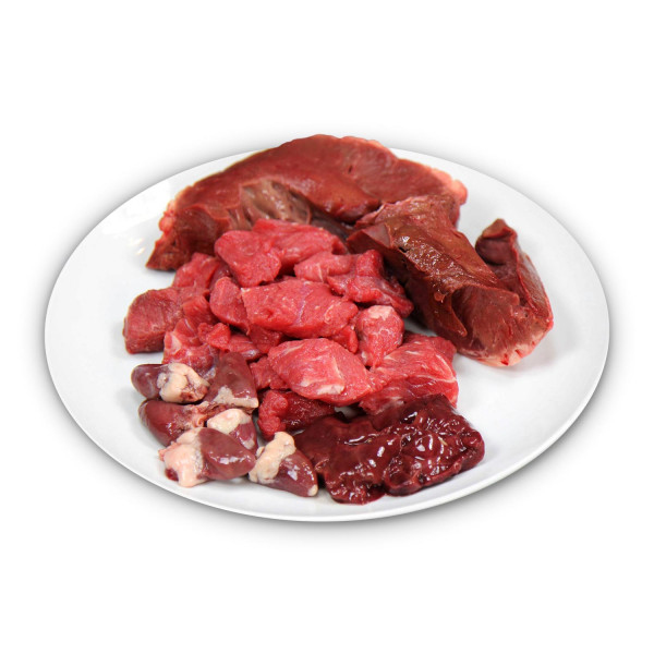 Ten posiłek oferuje twojemu ukochanemu wszystko, czego potrzebuje. Świeża wołowina w połączeniu ze smacznymi i zdrowymi sercami oraz wyjątkowy kurczak z marchewką to wyjątkowe i ekskluzywne doznania, które dostarczają jej również wszystkich ważnych witamin i minerałów. „Odpowiednie do gatunku, bliskie naturze i zdobyczy” – oznacza to dla nas bardzo wysoką zawartość mięsa. Całkowicie unika się zbóż, cukru, konserwantów lub aromatów, a także syntetycznych środków wiążących.