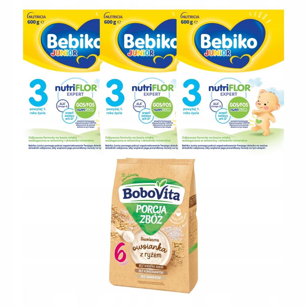 Mleko BEBIKO 3 3x600g + kaszka GRATIS bezmleczna owsianka z ryżem 170g