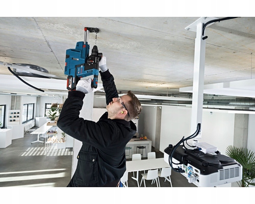 Wkrętarka GBH 18V-26 F Professional z bezkluczowym uchwytem wiertarskim to wszechstronne urządzenie w segmencie akumulatorowych wiertarek udarowych Bosch SDS plus, dlatego idealnie nadaje się do codziennego użytku używać. Dodatkowy odsysacz pyłu GDE 18V-16 Professional można połączyć z wiertarką udarową i zapewnia on niezależne rozwiązanie w zakresie pyłu HEPA zapewniające maksymalną mobilność. Wiertarka udarowa jest również wyposażona w funkcję KickBack Control i Electronic Precision Control (EPC), co zapewnia lepszą obsługę i większą ochronę użytkownika. Jego mocny silnik zapewnia energię udaru o wartości 2,6 J i dużą szybkość usuwania materiału.