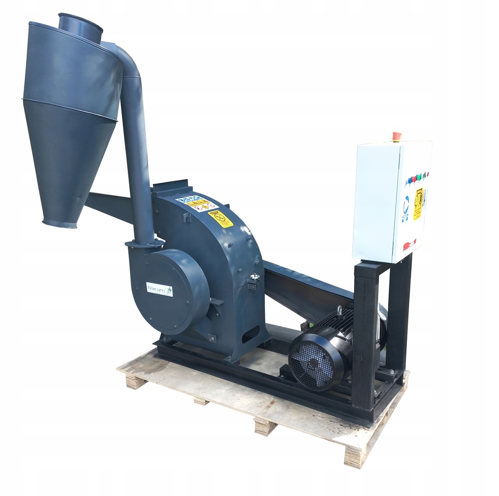 Młyn znajduje zastosowanie w produkcji Pelletu, ponieważ po rozdrobnieniu materiał uzyskuje idealną frakcję do peletowania. Dodatkowo pełni funkcje filtra na którym zatrzymają się wszystkie niepożądane elementy znajdujące się w materiale mogące uszkodzić Pelleciarke, np elementy metalowe, twarde sęki, kamienie. Młyn bijakowy o mocy kW osiąga wydajność do 900 kg/h w zależności od użytego sita oraz wilgotności materiału wsadowego. Urządzenie przeznaczone do pracy z odpadami drzewnymi, gałęziami, panelami o frakcji nie przekraczającej 80 mm