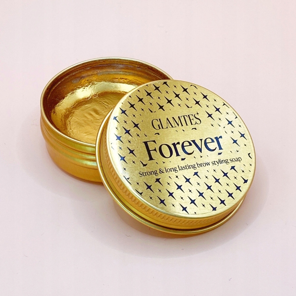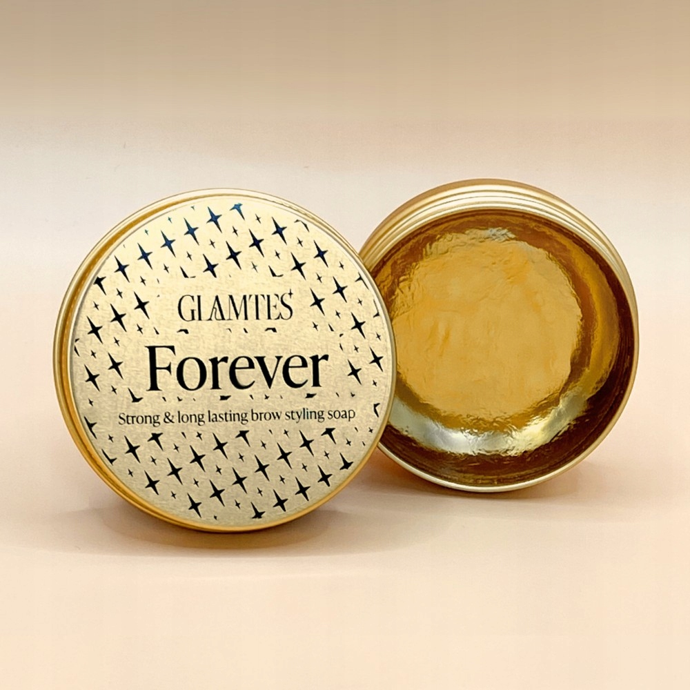 GLAMTES Forever to bezbarwne, perfumowane mydło do stylizacji brwi (masa netto ~ 31 g) zamknięte w eleganckiej, złotej aluminiowej puszce, które utrwala efekt nawet do 12 godzin – bez osypywania, bez białego nalotu, bez kompromisów.