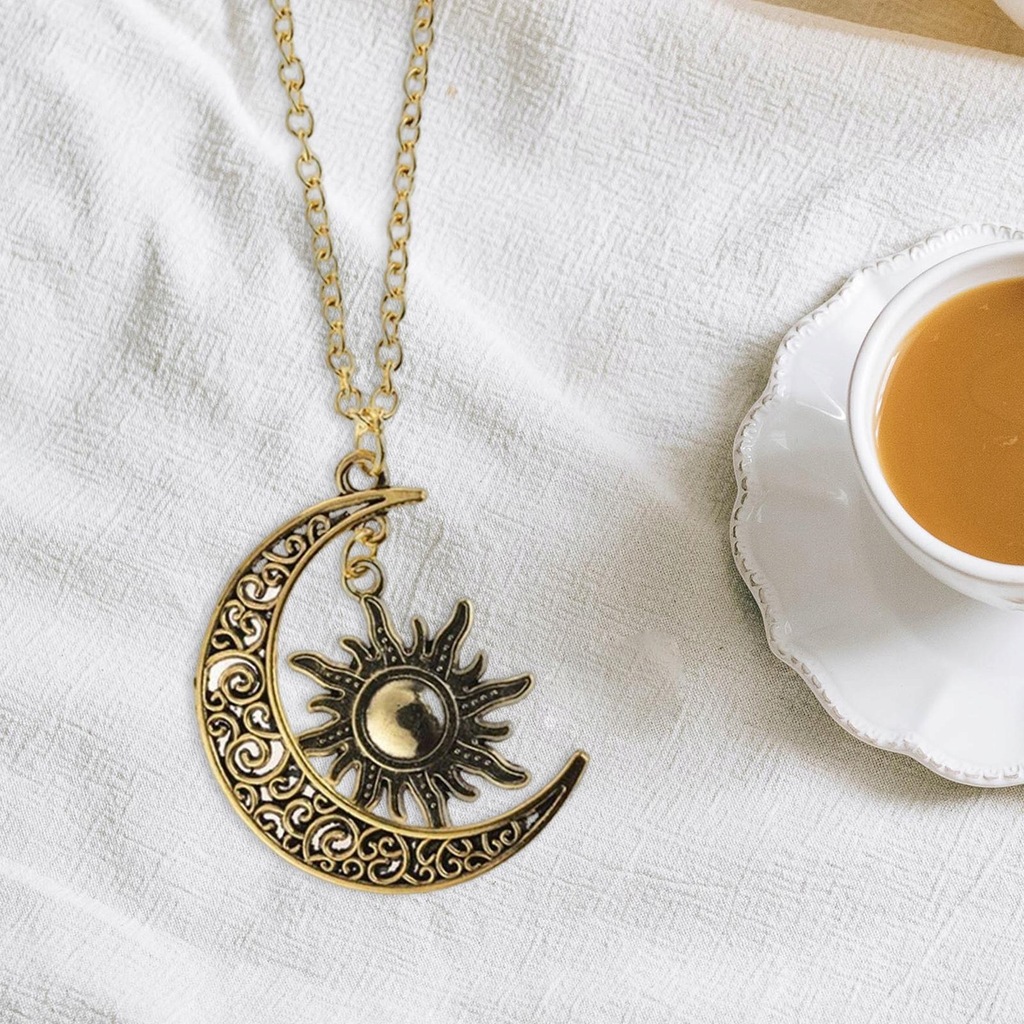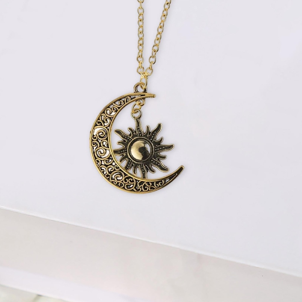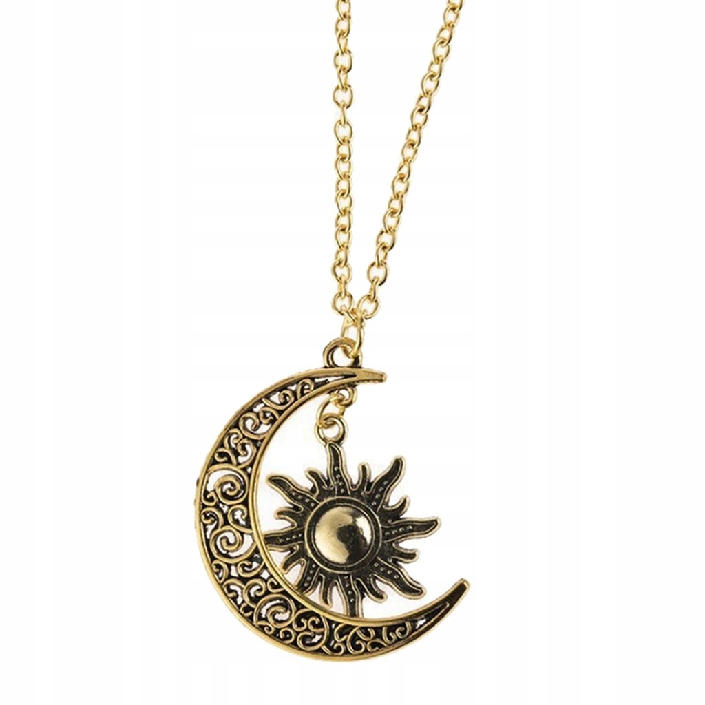 Modny Naszyjnik Z Półksiężycem I Słońcem Polerowana Biżuteria Dla Kobiet Teen Golden