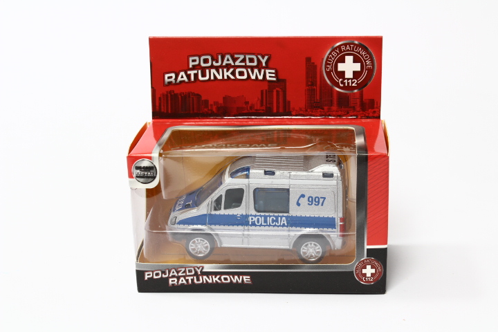 Kolekcja zabawek Pojazdy ratunkowe marki Daffi. Model Policja wykonany w skali 1:50. Do produkcji wykorzystano metal oraz gumę. Produkt powleczony jest bezpiecznych, nietoksycznym lakierem. Zabawka pomoże w prawidłowym rozwoju koordynacji wzrokowej oraz ruchowej Twojego dziecka oraz nauczy odpowiedzialności od najmłodszych lat. Produkt przeznaczony dla dzieci powyżej 3. roku życia.