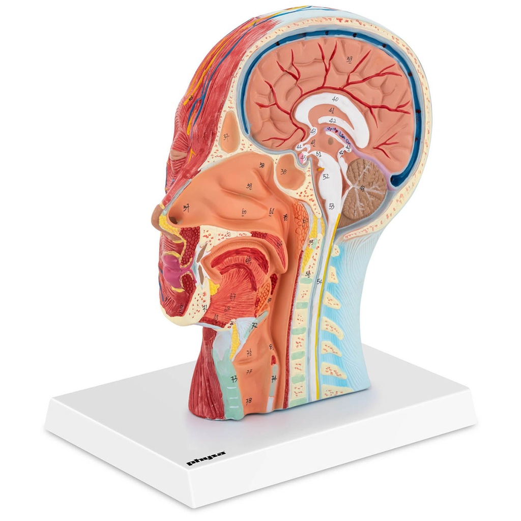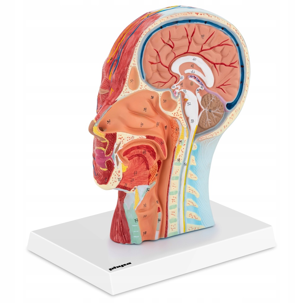Model anatomiczny głowy i szyi człowieka marki Physa to doskonała pomoc dydaktyczna podczas nauki budowy ludzkiego organizmu. Dwustronna konstrukcja repliki pozwala dokładnie zapoznać się z poszczególnymi elementami. Z jednej zaprezentowano wnętrze głowy, a z drugiej mięśnie oraz naczynia krwionośne. Wszystko zostało opisane na dołączonej liście. Szczegółowy model 3D w skali 1:1. Model wykonany z tworzywa PVC.