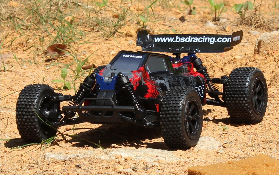 Zdalnie sterowany model auta w skali 1/10 w zestawie z akumulatorem napędowym oraz ładowarką. Buggy Chebi BX marki BSD RACING ze względu na niską cenę, napęd na wszystkie koła i trwałą konstrukcję świetnie sprawdzi się jako model dla początkującego i średnio zaawansowanego użytkownika.