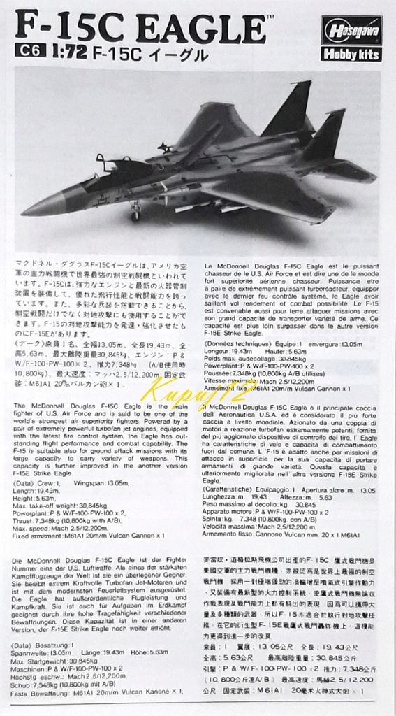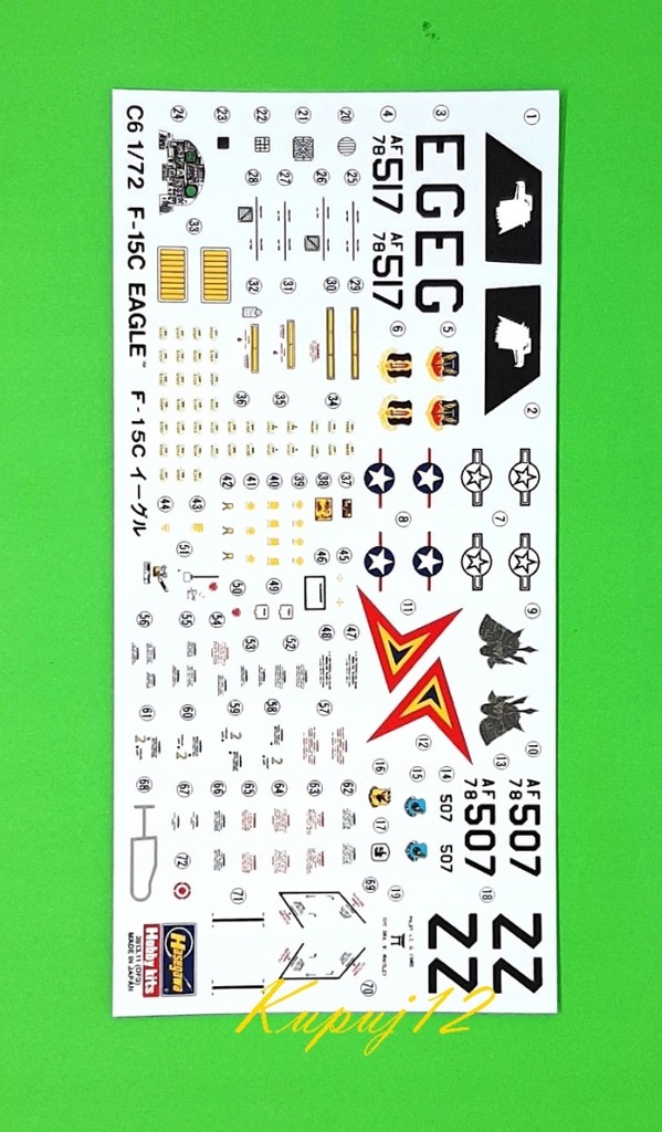 Zestaw zawiera plastikowy model do sklejania samolotu do sklejania F-15C EAGLE