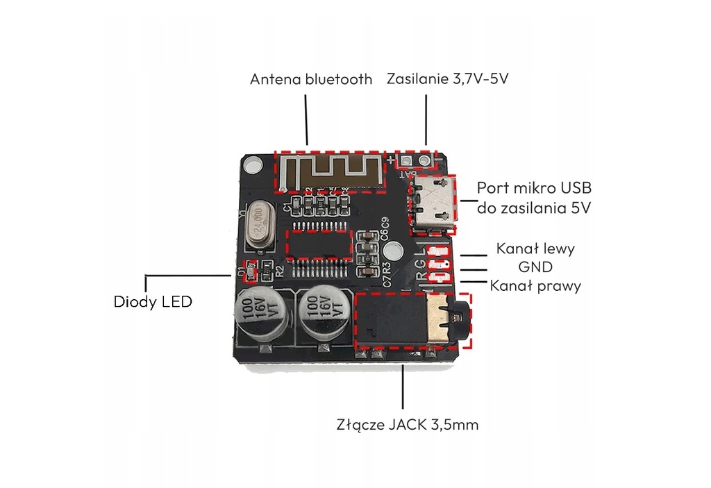 - obsługiwane profile: A2DP/AVCTP/AVDTP/AVRCP/HFP