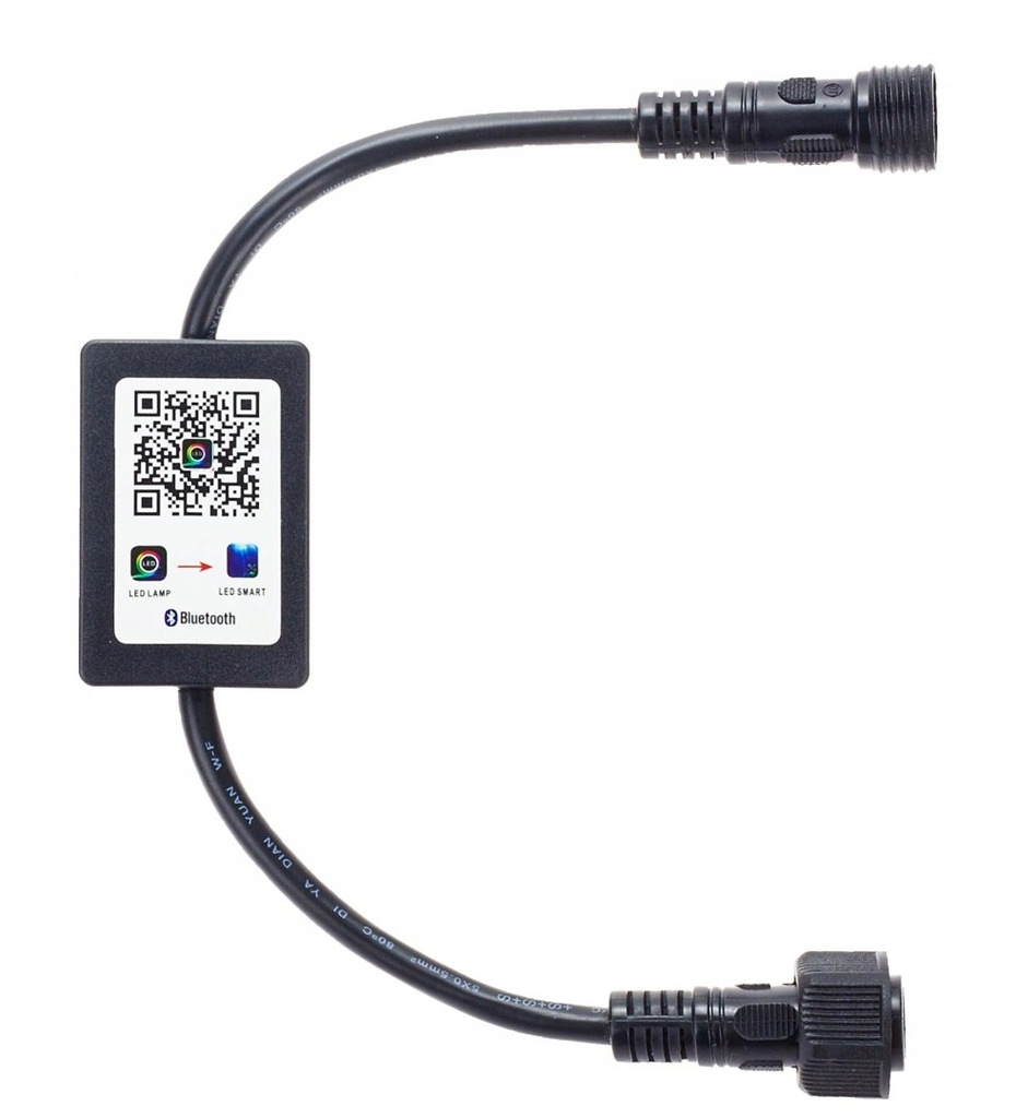 Na kablu zasilającym pomiędzy lampą a zasilaczem znajdziemy złączkę którą należy odkręcić. Po odkręceniu będziemy mogli rozdzielić od siebie kabel. Modul bluetooth wpinamy między przerwę w kablu zakręcając złączki po obu stronach.
