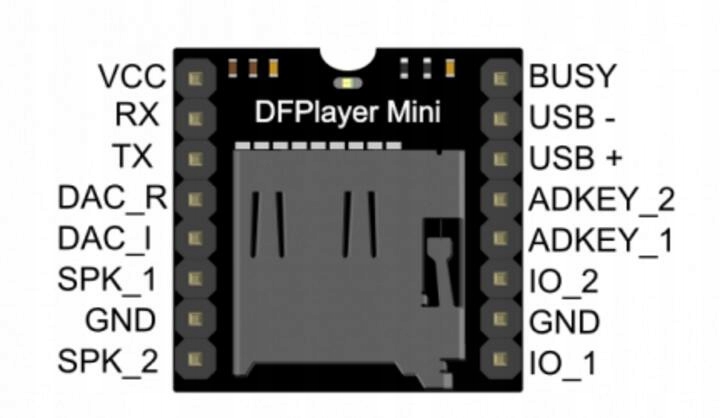 Moduł DFPlyayer to odtwarzacz plików MP3 oraz WAV z zintegrowanym wzmacniaczem audio, pozwalającym podłączenie 3-watowego głośnika. Dzięki swojej prostej obsłudze oraz niewielkim wymiarom, układ ten znajdzie zastosowanie w mnóstwie aplikacji. Moduł ten oparty jest na chipie dekodującym YX5200-24SS, który wspiera odtwarzanie plików audio bezpośrednio z karty microSD. Urządzenie doskonale komponuje się ze środowiskiem Arduino oraz każdym mikrokontrolerem wyposażonym w interfejs szeregowy UART. Proste komendy pozwolą nam na wybór utworu, odtwarzanie losowe, regulację głośności, ustawienie EQ, pauzę, stop oraz mnóstwo innych operacji. Bogata dokumentacja oraz wsparcie użytkowników w internecie pozwoli na sprawne tworzenie projektów nawet początkującym elektronikom.