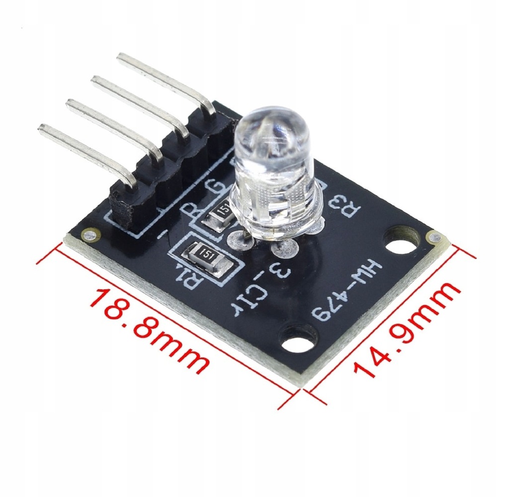 Moduł LED z diodą RGB dla Arduino MCU AVR PIC Raspberry, posiada wyprowadzenia golpin raster 2,54mm. Za pomocą sygnału PWM mamy możliwość sterowania natężeniem poszczególnych barw i mieszania kolorów.