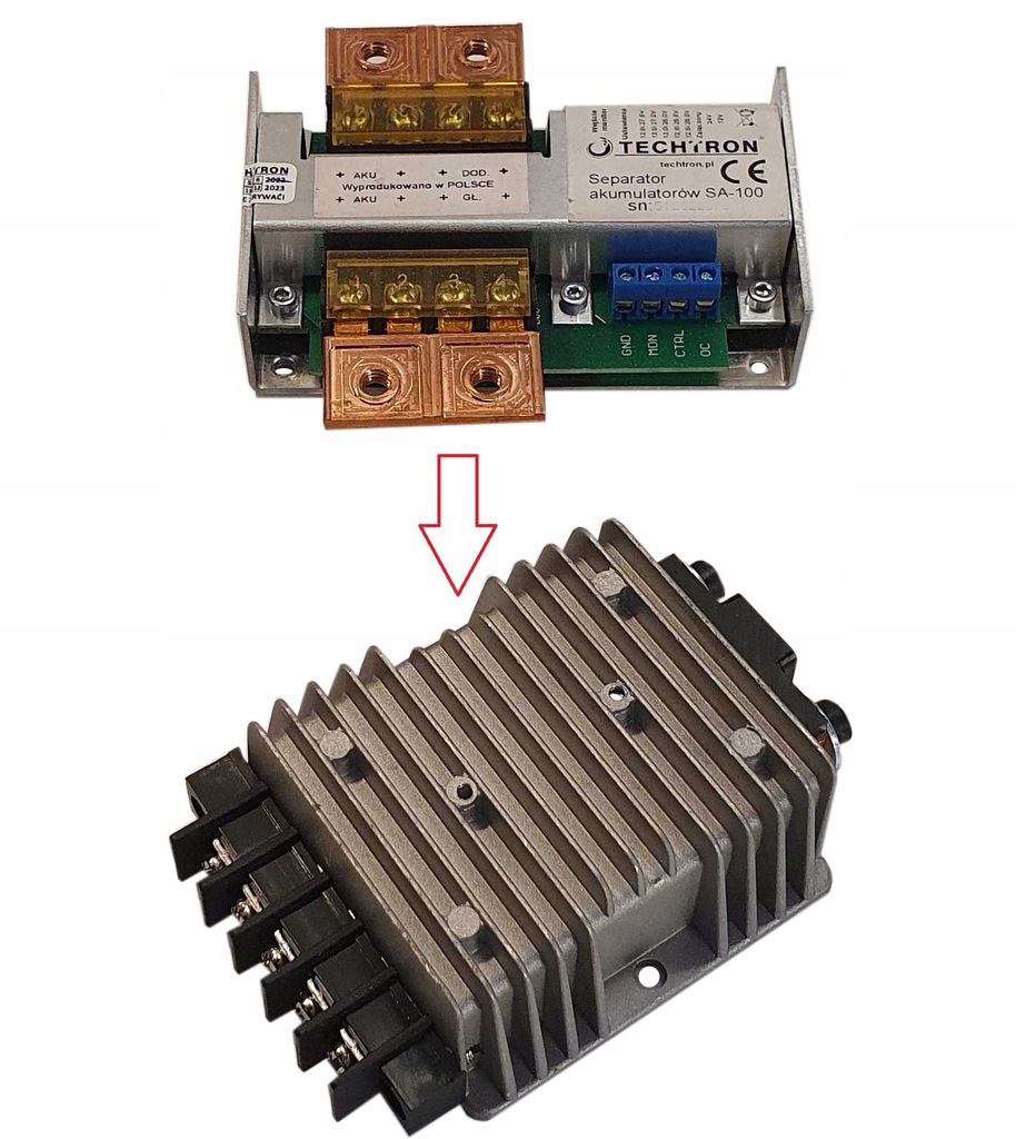 Separator jest układem w 100% elektronicznym, oznacza to, że nie posiada elementów mechanicznych tj. przekaźniki.