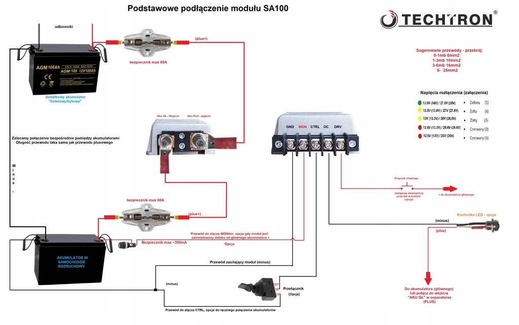 - Zalecana maksymalna pojemność akumulatora dodatkowego do 150Ah