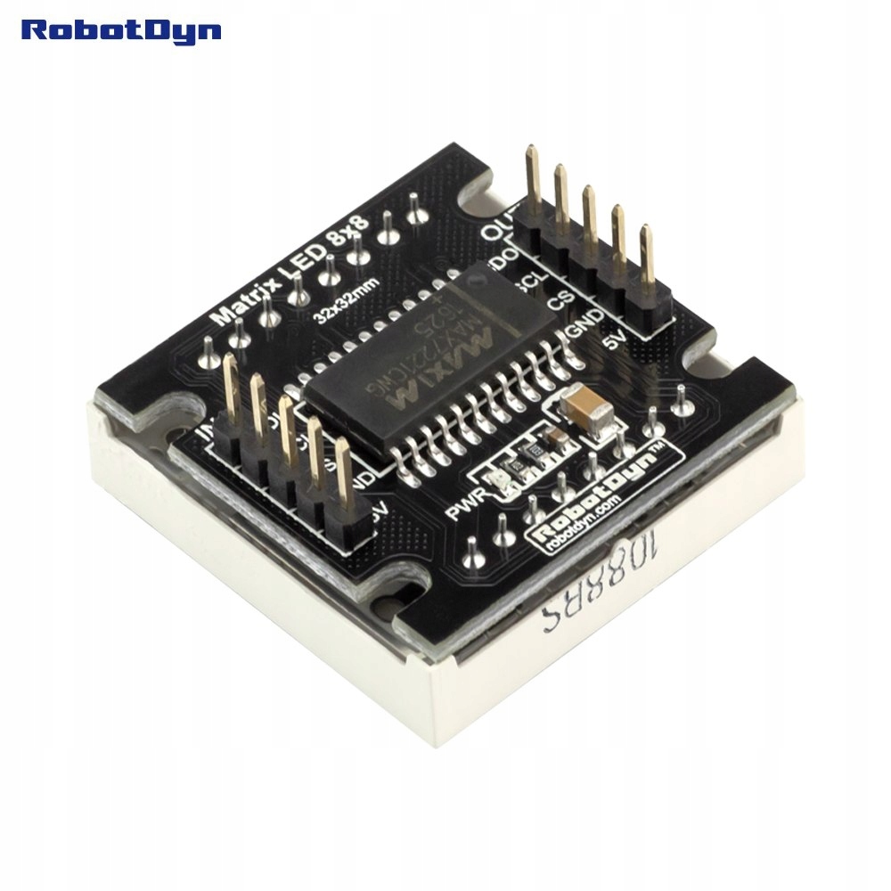 Moduł z 64 diodami LED koloru żóltego w matrycy 8x8. Diody strowane za pomoca układu MAX7221 z interfejsem szeregowym.