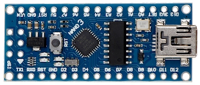 Płytka NANO-V3/CH340 jest funkcjonalnym klonem układu Arduino NANO; Komunikacja: UART, mini USB - Typ B ; Zasilanie: 7 ... 12 V DC, 5 V DC - Port USB ;