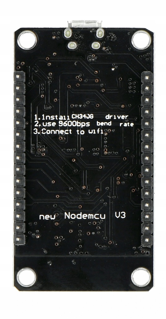 Moduł WiFi oparty na układzie ESP8266. Na pokładzie 10 portów GPIO (z których każdy może obsłużyć PWM, I2C oraz 1-wire), wbudowane 10-bitowe ADC oraz konwerter USB-UART. Posiada zainstalowane oprogramowanie NodeMCU, który umożliwia programowanie za pomocą języka skryptowego Lua lub przy pomocy Arduino IDE.