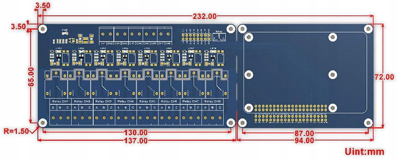 - Napięcie sterowania przekaźnikami: 3.3/5V