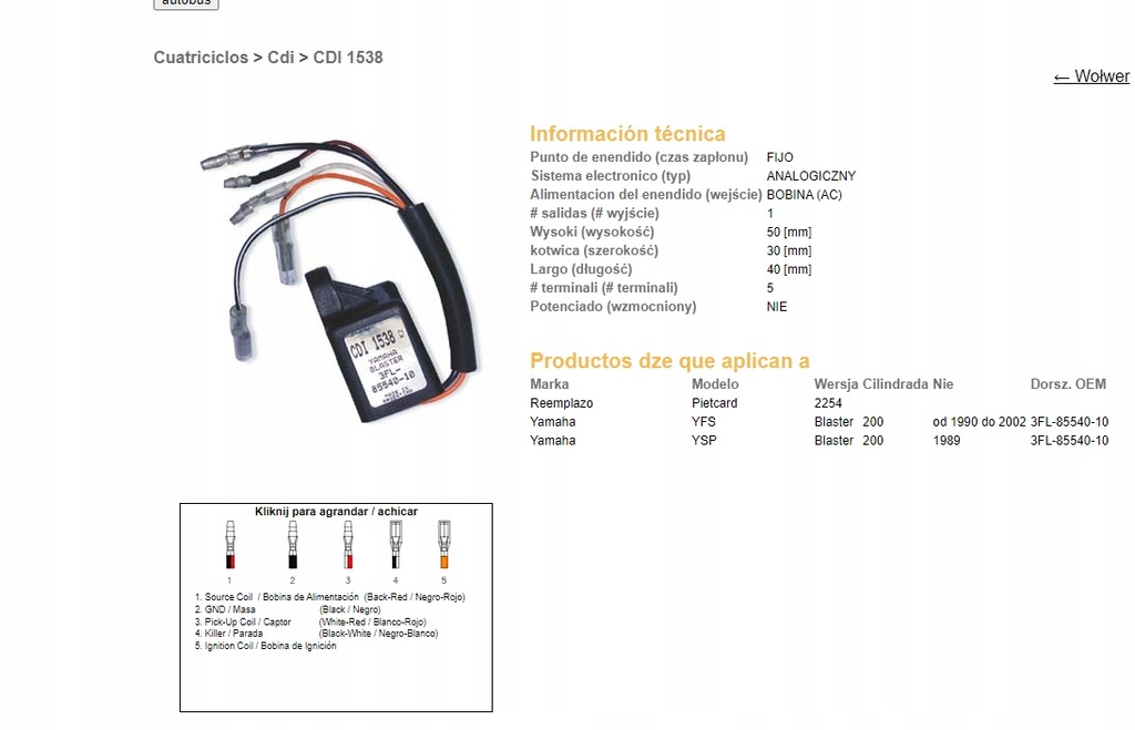 Moduł zapłonowy pasuje do: YAMAHA YFS 200 1990-2002