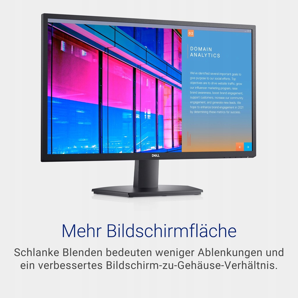 Więcej powierzchni ekranu: wąskie ramki oznaczają mniej elementów rozpraszających i lepszy stosunek ekranu do obudowy. Solidny i kompaktowy: zwolnij miejsce na biurku dzięki temu niewielkiemu monitorowi z podstawą mniejszą o 23%. Zintegrowany zasilacz i uchwyt na kable pomagają jeszcze bardziej ograniczyć bałagan. Opakowanie przyjazne dla środowiska: Aby zmniejszyć wpływ naszej produkcji na środowisko, monitor ten jest dostarczany bez styropianu, a opakowanie składa się w co najmniej 75% z tektury pochodzącej z recyklingu. Oszczędzanie energii: Oszczędzaj energię dzięki PowerNap, funkcji, która przyciemnia lub przełącza ekran w stan uśpienia, gdy nie jest używany. Większy komfort oglądania: zminimalizuj ekspozycję na niebieskie światło, aby zmniejszyć zmęczenie oczu dzięki funkcji Dell ComfortView z certyfikatem TÜV. Mniejsze zmęczenie oczu: ekran pozbawiony migotania i o niskim współczynniku odbicia zapewnia maksymalną przyjazność dla oczu i minimalizuje zakłócenia. Uproszczony ekran: Dell EasyArrange umożliwia łatwe zarządzanie wieloma aplikacjami i oknami na jednym ekranie. Aby zapewnić płynne odtwarzanie obrazu podczas grania, monitor ten jest wyposażony w technologię AMD FreeSync i oferuje szybki czas reakcji oraz częstotliwość odświeżania 75 Hz. 1. Złącze zasilania | 2.HDMI | 3. VGA Firma Dell uwzględnia zrównoważony rozwój we wszystkim, co robi, począwszy od wyboru zrównoważonych materiałów do produktów i opakowań, po ponowne użycie, regenerację lub odpowiedzialny recykling po zakończeniu cyklu życia. Tworzymy innowacyjne, zrównoważone technologie i rozwiązania, które pomagają naszym klientom poprawiać wyniki biznesowe i ograniczać emisję, jednocześnie realizując ambitne cele klimatyczne, które przynoszą korzyści społeczeństwu i planecie. Wprowadzamy innowacje o obiegu zamkniętym w projektowaniu, produkcji, materiałach i usługach przyjaznych dla środowiska, a także współpracujemy, aby radykalnie zmniejszyć globalną ilość odpadów i wpływ na środowisko. Wykorzystujemy nasz rozmiar i zasięg, aby na nowo wymyślać, ponownie wykorzystywać i poddawać recyklingowi, dążąc do przyszłości, w której nic się nie marnuje. Ten globalny łańcuch dostaw daje nam zasięg i możliwość rozwoju odpowiedzialnej produkcji. Nalegamy na przestrzeganie etycznych praktyk, szacunek i godność dla wszystkich, którzy wytwarzają nasze produkty, a także stosowanie odpowiedzialnych praktyk w celu zminimalizowania naszego wpływu na środowisko.