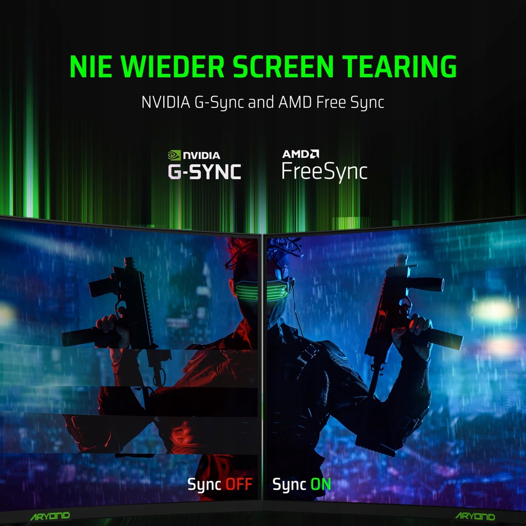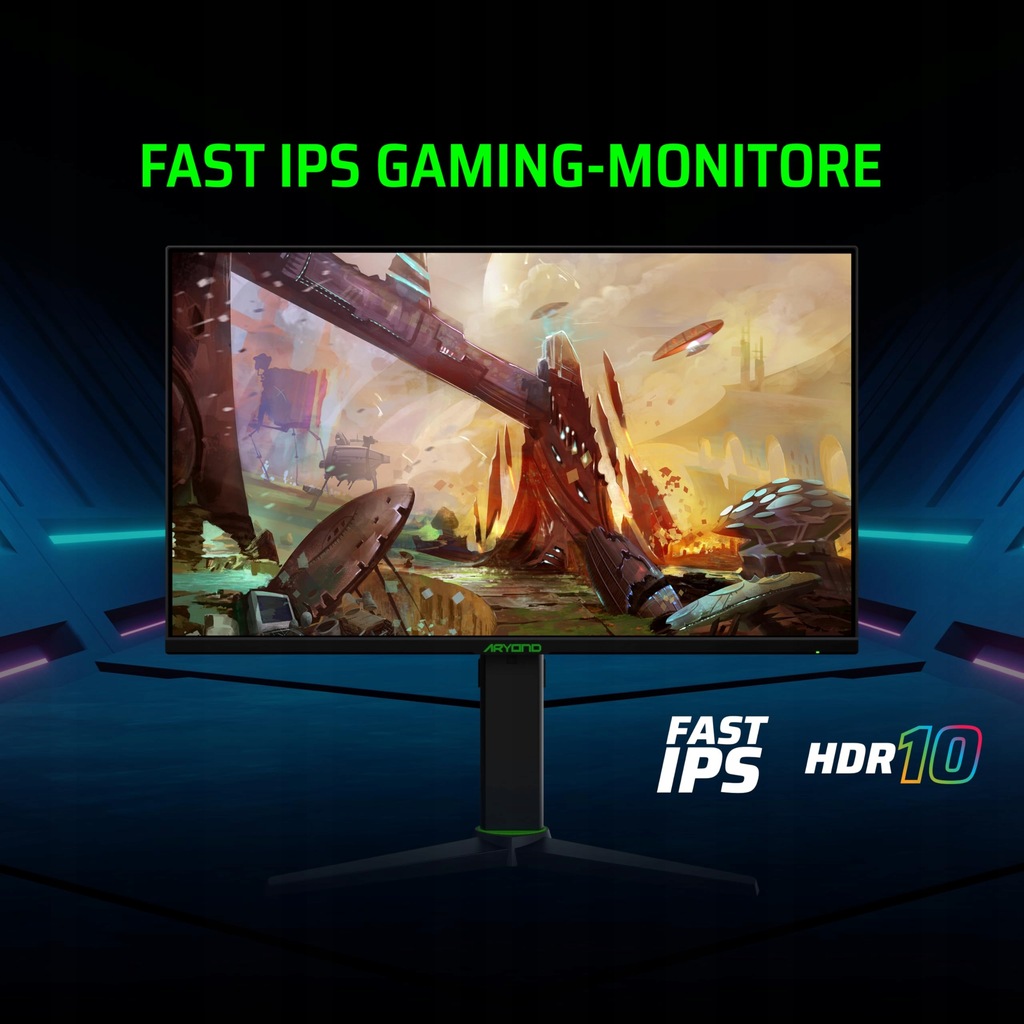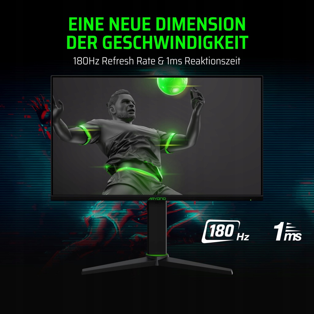 Dzięki Aryond A24 z szybkim panelem IPS najszybsze momenty i filmy w grach są ostrzejsze niż kiedykolwiek. Uzyskaj płynną rozgrywkę z częstotliwością odświeżania 180 Hz. Zdobądź przewagę taktyczną, zwłaszcza w grach rywalizacyjnych, i zostań mistrzem. Obsługa G-Sync i FreeSync w Aryond A24 dostosowuje się do liczby obrazów generowanych przez procesor graficzny. Zapewnia płynną rozgrywkę. Dzięki 24 calom Aryond A24 idealnie nadaje się do małych biurek lub biur o ograniczonej przestrzeni. Ciesz się nieprzerwanymi wrażeniami z gry dzięki cienkiej konstrukcji ramki. Ciesz się bogatym dźwiękiem dzięki dwóm głośnikom Aryond A24 o mocy 2 W bez konieczności stosowania głośników zewnętrznych. Dodaj stylu swoim wygranym dzięki dynamicznie zmieniającemu się oświetleniu RGB Aryond A24.