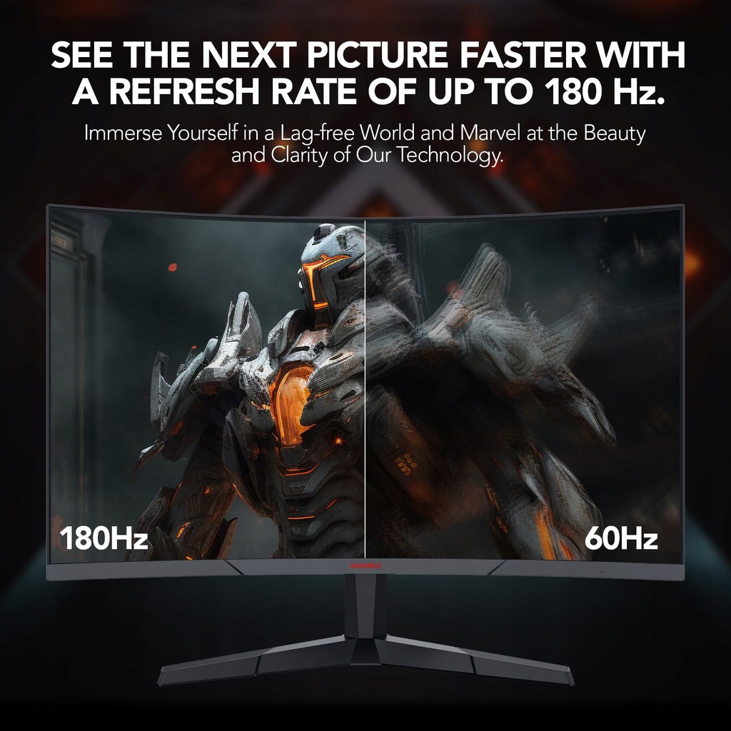 Rozdzielczość 2K Ultra HD + krzywizna 1800R; Rozdzielczość monitora QHD 2560*1440 sprawia, że szczegóły gry są wyraźniejsze i sprawiają, że wzór jest doskonalszy. Zakrzywiona powierzchnia 1800R daje szokujące wizualne wrażenie otoczenia, zapewniając kinowy wygląd i wrażenia na miejscu