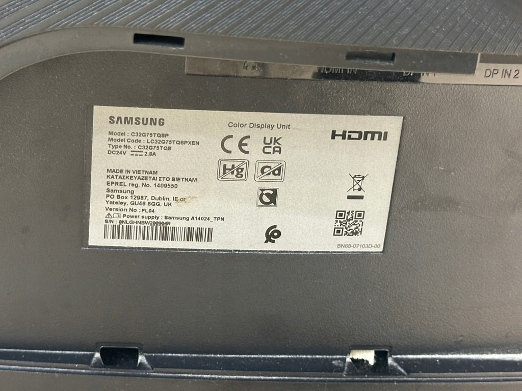 Na sprzedaż monitor gamingowy Samsung C32G75TQSP o przekątnej 32", rozdzielczości 4K i częstotliwości odświeżania 240 Hz. Monitor w idealnym stanie technicznym i wizualnym, bez opakowania. Rewelacyjny do gamingu i zastosowań profesjonalnych – głęboka czerń, wysoki kontrast, szybki czas reakcji i technologia QLED.