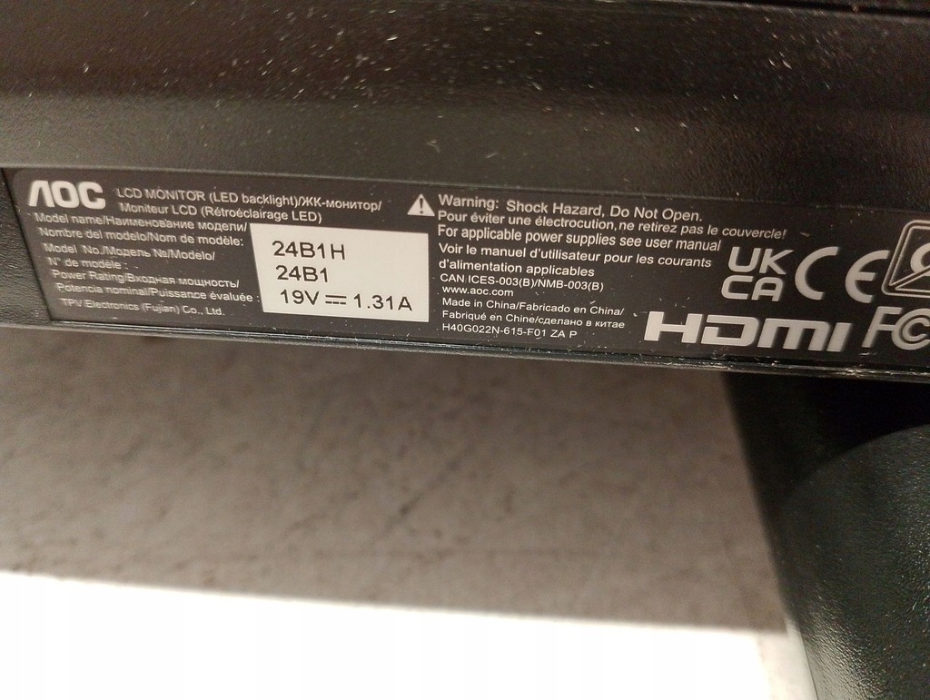 Zawartość pudełka: monitor AOC 24B1H 59,9 cm (24 cale), kabel zasilający, kabel HDMI, płyta CD ze sterownikami, karta gwarancyjna