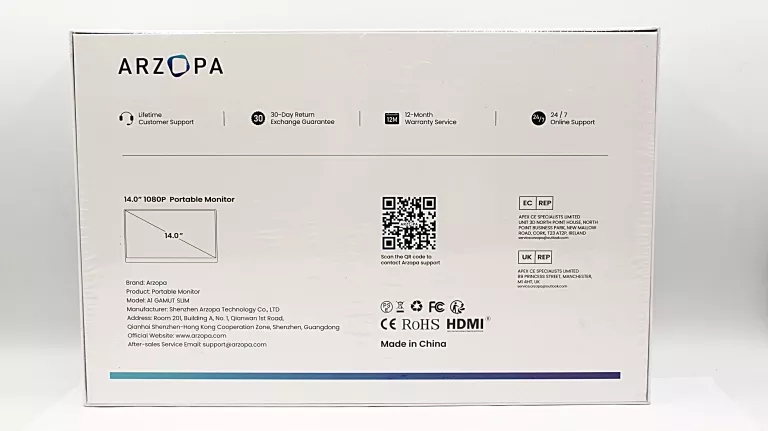Przenośny monitor do laptopa ARZOPA zapewnia wysoką rozdzielczość 1080P przy 60Hz, jasność 300 cd/m i współczynnik kontrastu: 1000: 1