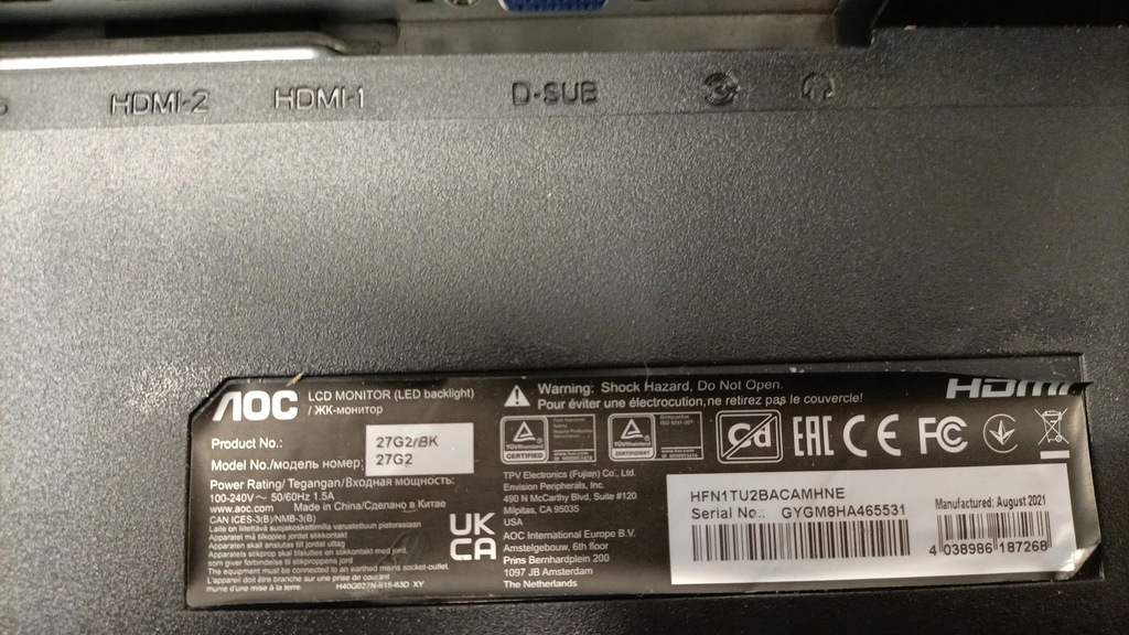 Jasność/kontrast: 250 cd/m², 1000:1, Połączenia: 2 x HDMI 1, 4, 1 x DisplayPort 1, 2