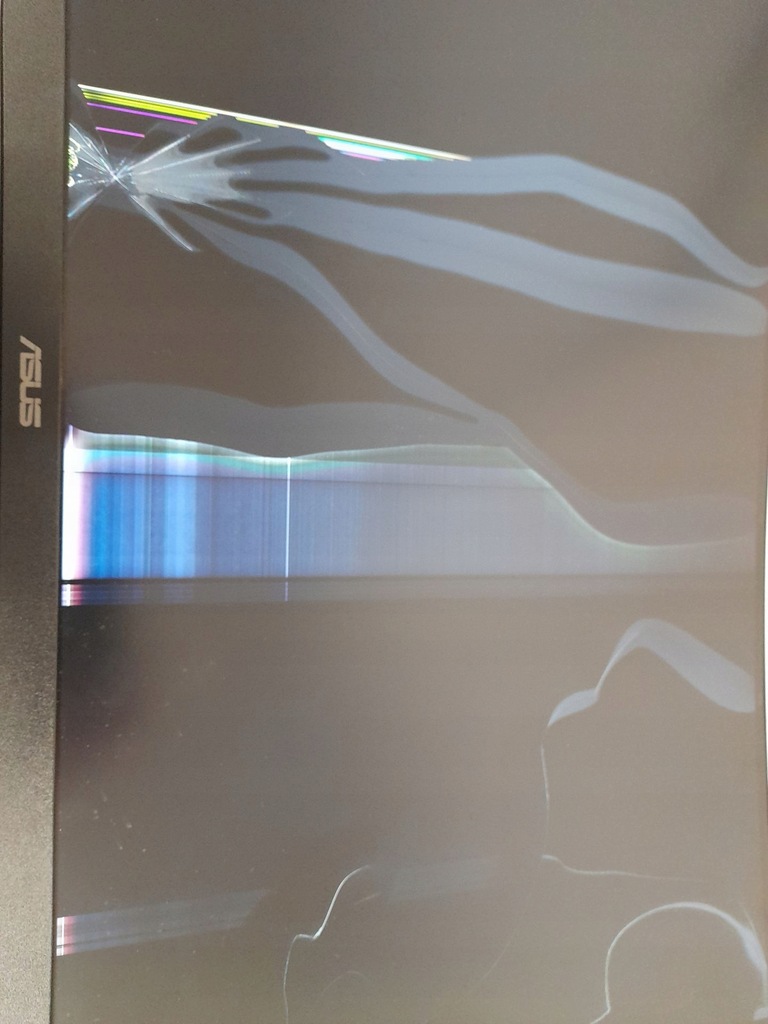 Uszkodzona matryca, rozlany ekran, brak okablowania.