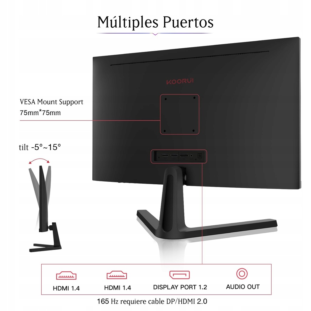 [Elastyczna łączność] Monitor do gier ma bogate interfejsy: HDMI (v14) x 2, DisplayPort 1.2 x1 i wyjście audio; Monitor można również pochylić w zakresie od -5° do 15 stopni; Akcesoria: kabel DP (1,5 m), kabel zasilający, adapter, podstawa i instrukcja obsługi